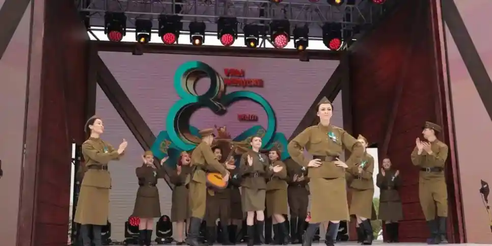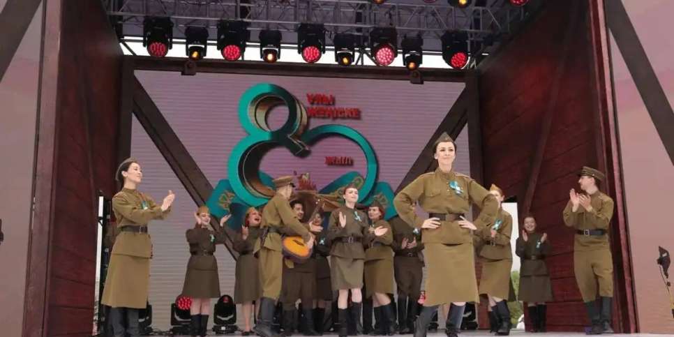 Ашық аспан астындағы «Бейбіт аспан астында» атты концерттік бағдарламада қазақстандық әншілер, музыкалық және би ұжымдары өнер көрсетіп, соғыс жылдарының әндері, романстар шырқалып, би қойылымдары мен балалар спектакльдері көрсетілді.