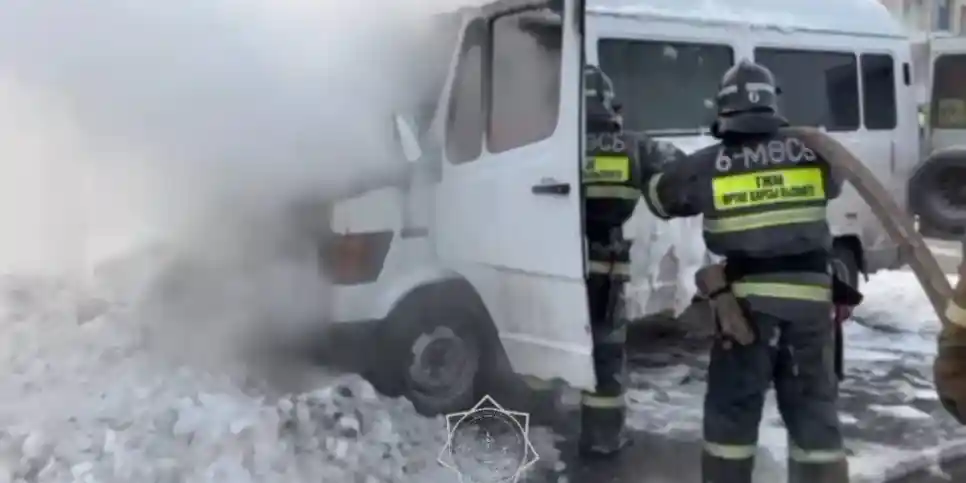 Астананың сол жағалауында шағын автобус отқа оранды