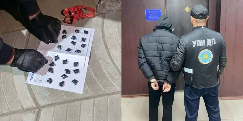 Жеке тінту кезінде тәртіп сақшылары оның жанынан қара түсті изолентаға оралған, әрқайсысы 1 грамм салмаққа жуық 25 бума тауып, тәркіледі. Сараптама нәтижесінде алынған заттың жалпы салмағы 24,7 грамды құрайтын «Альфа-PVP» синтетикалық есірткі заты екені анықталды.