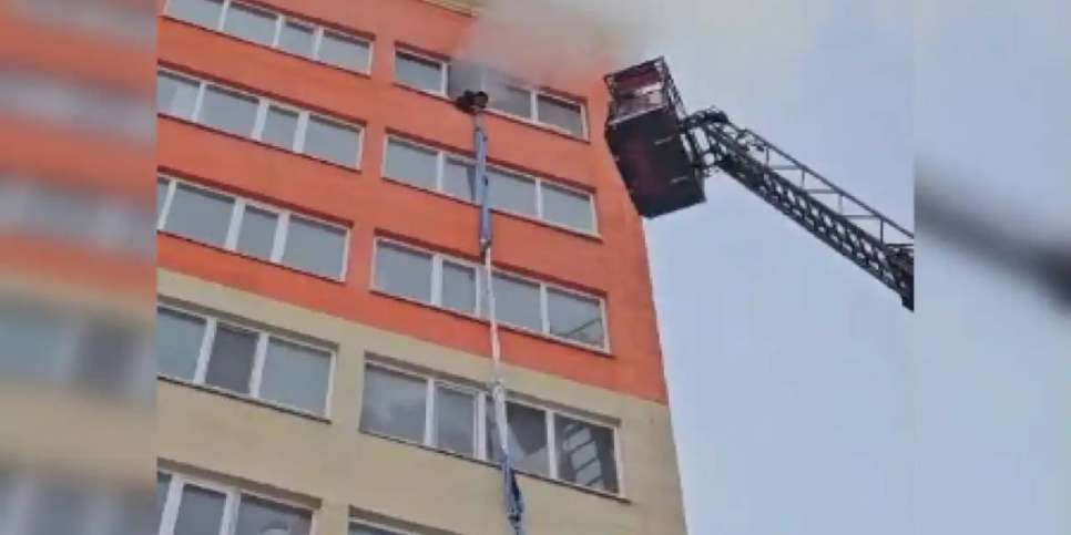 Өрт сөндірушілер келгенге дейін ер адам бірнеше жайманы байлап, төмен түсуге тырысқан.