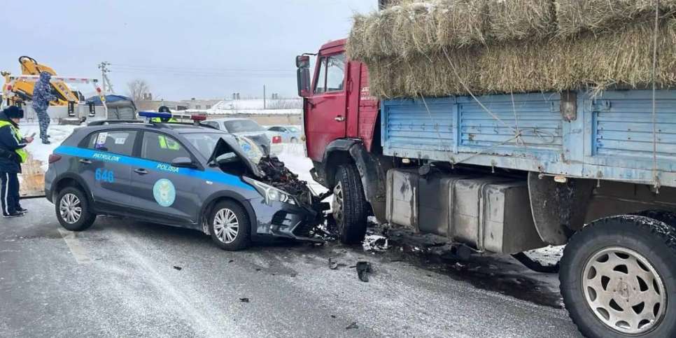 Семейде полицей автокөлігі КамАз-бен соқтығысты